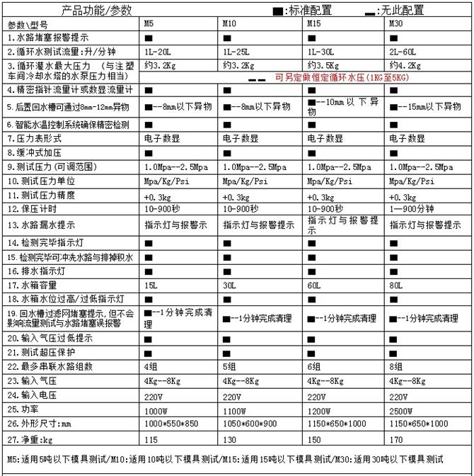 产品分4个型号: M5;M10; M15;M30L(非标定做)