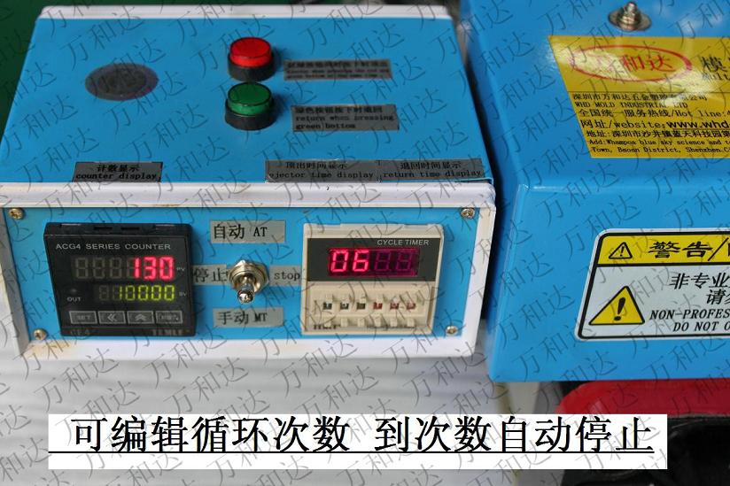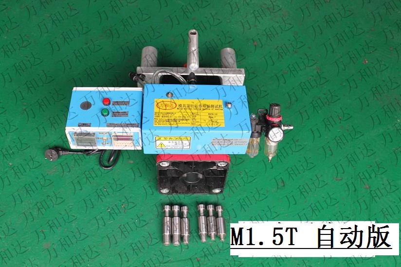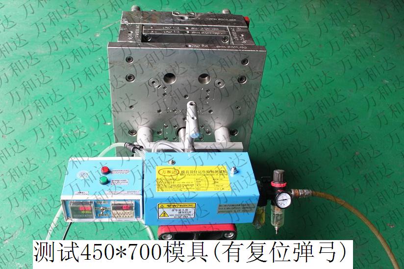 以现时各模具企业面临的现状: 原材料价格上涨; 劳动力成本提高; 人民币升值, 行业之间竞争激烈反而各企业模具定单没提高,因此我们只能在: 管理方面去优化; 机器设备能耗中去节约, 提高制作模具技术才能争取更大的收益。在制作模具成本中模具试模费用占总成本5%-15%之间,可想而之减少试模次数就是使公司收益更多。模具在试模过程经常出现一系列问题:如顶针运作不顺.冷却水路漏水或不通畅.油缸运作不顺畅等,其中顶针运作不顺最麻烦,轻微的打打油机.严重的下模重装改善。下模一次机台.人工费用就增加了许多。造成顶针运作不顺多数是组装时顶针.斜顶零件不干净;中托司与回针不顺造成的,试模前没有仔细检测。传统测试顶针运作方法有:用天车吊顶针板或用钻床去测试,此类操作不仅费时.动作不能连续并且不能垂直摆放来测试.本公司通过专业研发工程师用时10个月的研发, 于2011年9月推出国内首款(模具顶针顺畅测试机)产品模拟注塑机顶出机构实现连续前进.后退测试。
