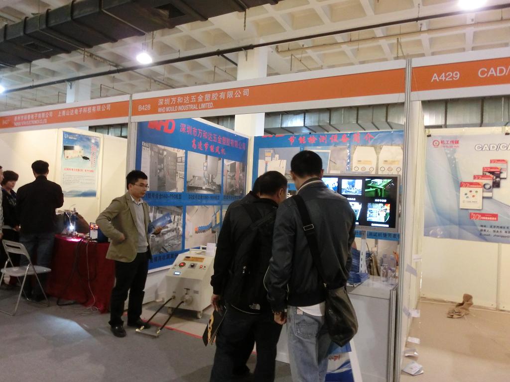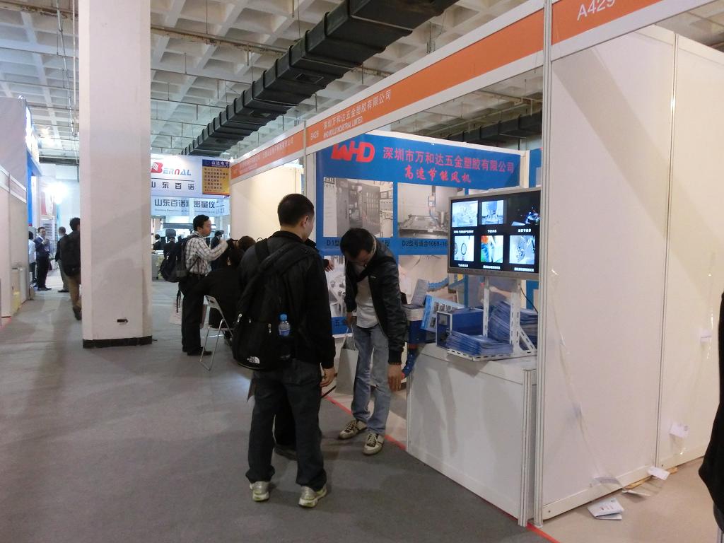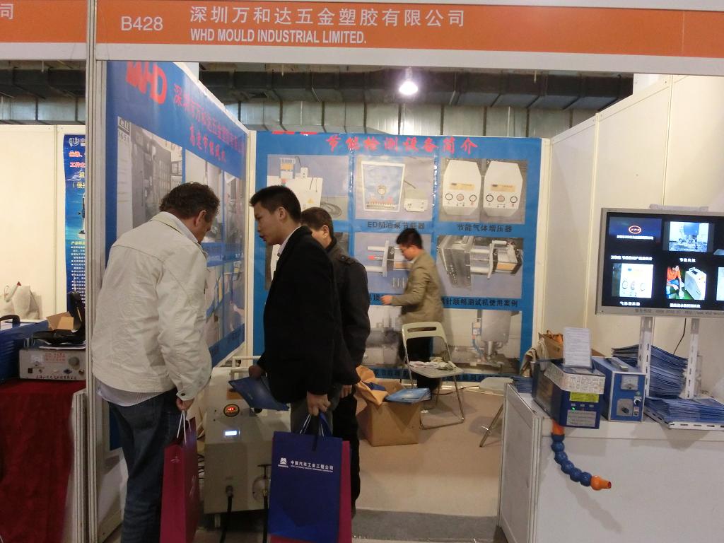 我司展示了第二代CNC节能风机; 第三代模具运水密封测试机; 第二代EDM油泵节能器; 第二代模具顶针顺畅测试机及气体增压器.产品得到众多来宾高度赞扬,并且得到贰十多个客户的订单。下图是(一汽)技术人员以及美国客户咨询实照。